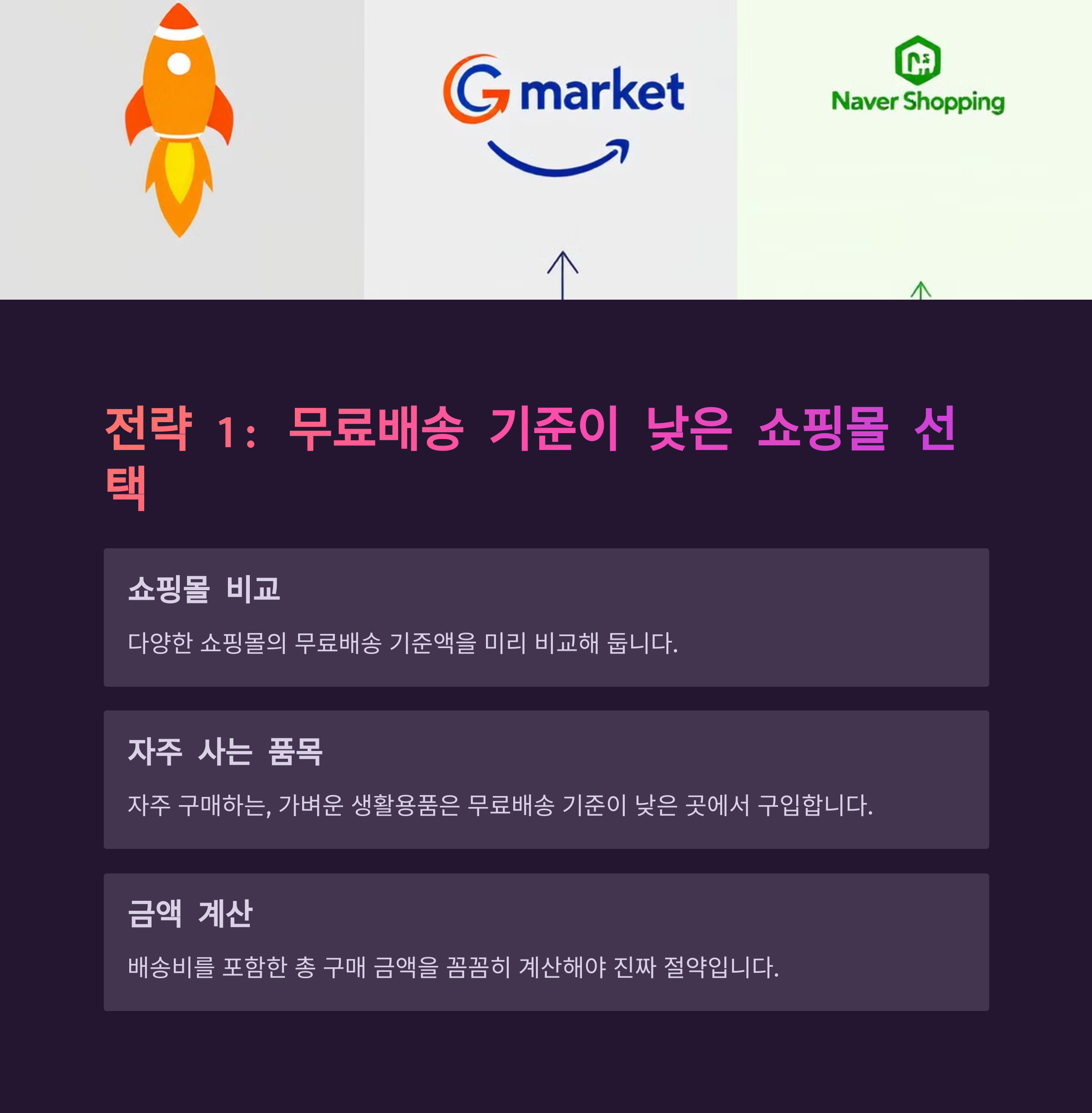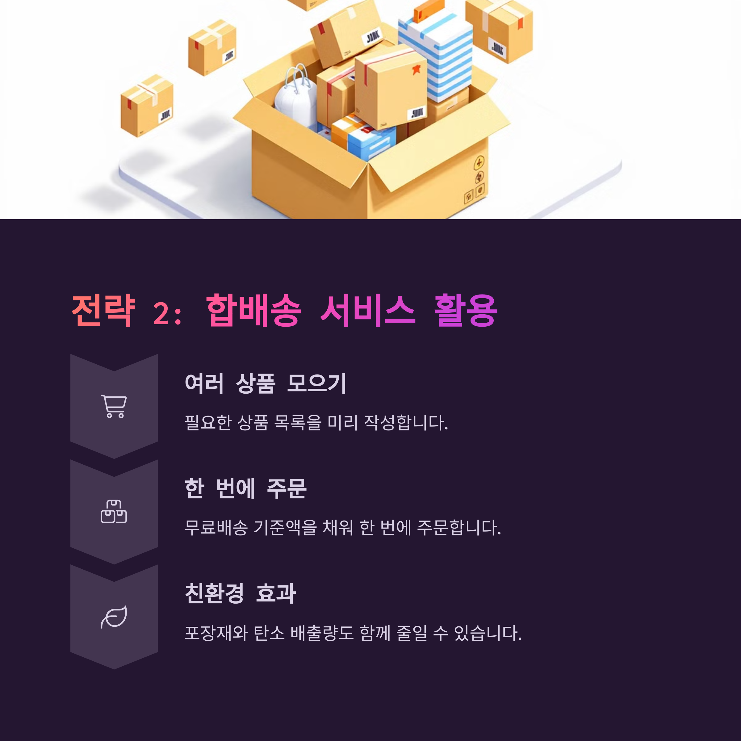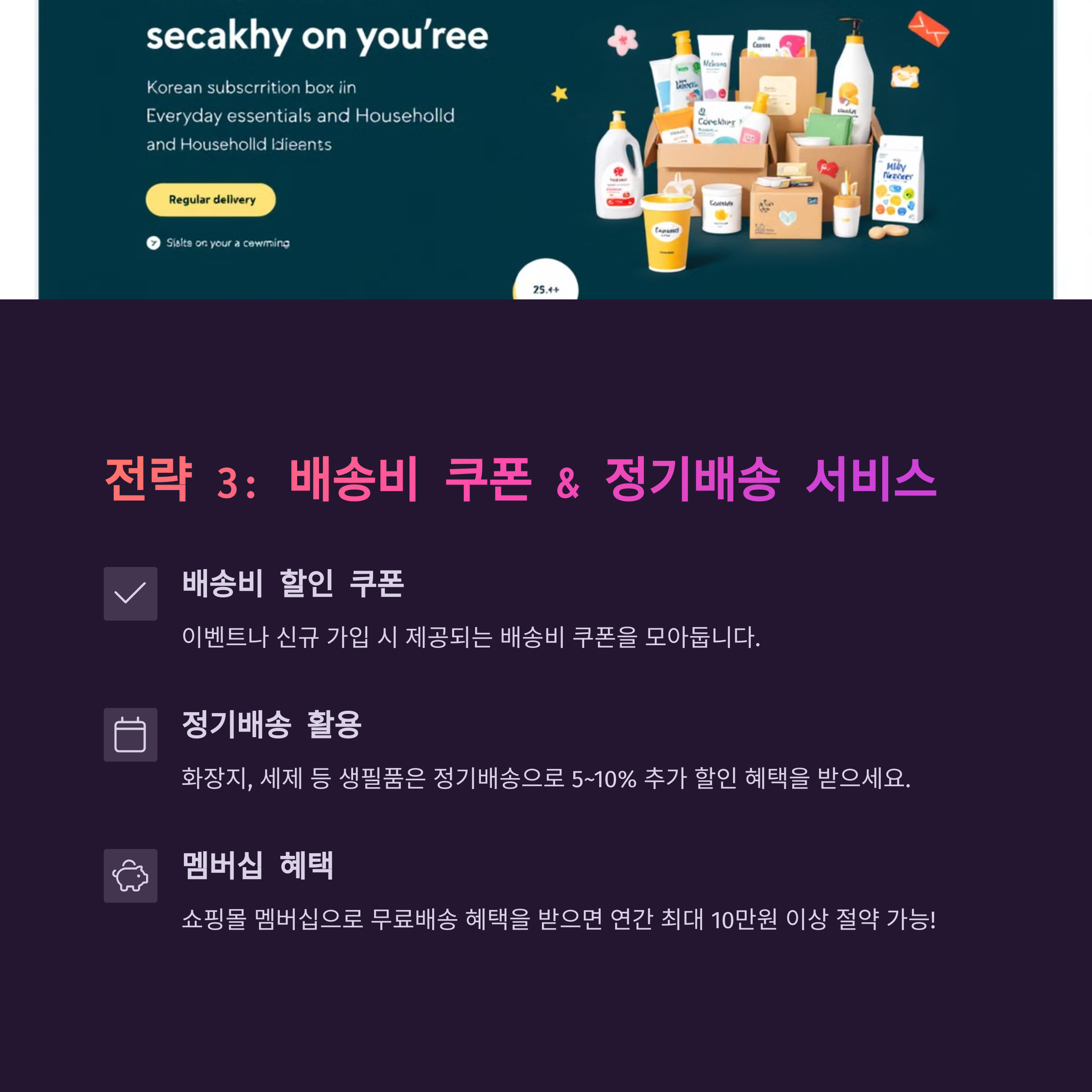 | 배송비 절약 팁 | 합배송, 쿠폰 활용, 정기배송 서비스 이용해보세요. |
