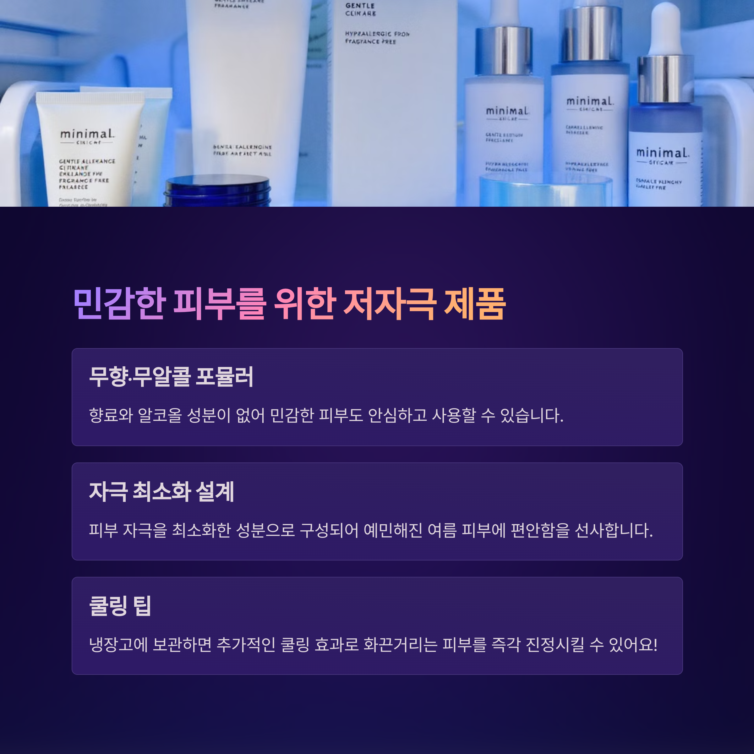 | 젤 타입 수분크림 | 진정 앰플 | 저자극 수분템 |