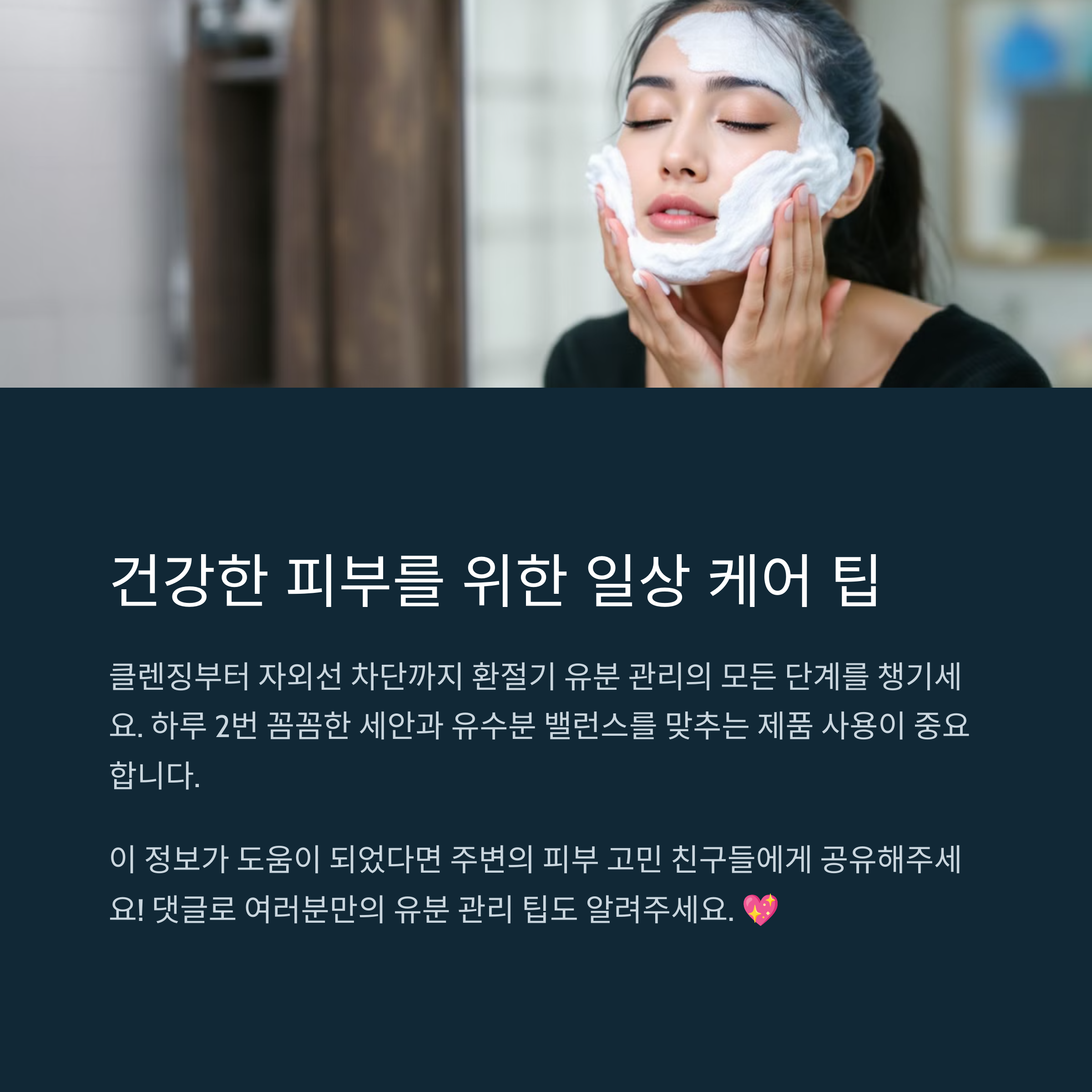 여러분은 환절기에 어떤 제품으로 유분 관리를 하고 계신가요? 직접 써보신 추천 아이템이나 꿀팁이 있다면 댓글로 자유롭게 공유해 주세요! 다양한 의견이 모이면 더 풍성한 정보를 나눌 수 있어요.