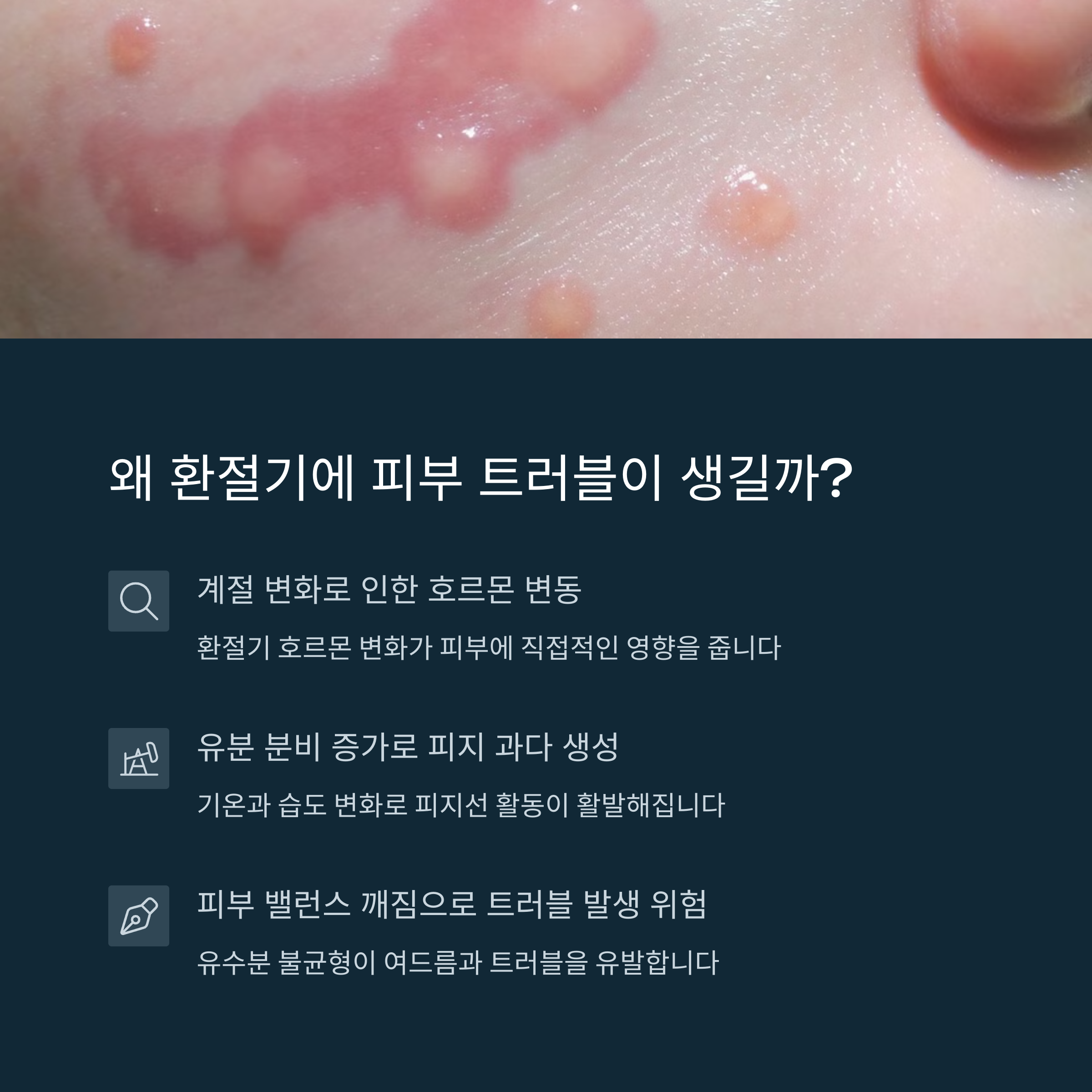 | 유분 조절이 필요한 이유 | 피지 과다와 모공 트러블을 예방하기 위해 필요해요 |