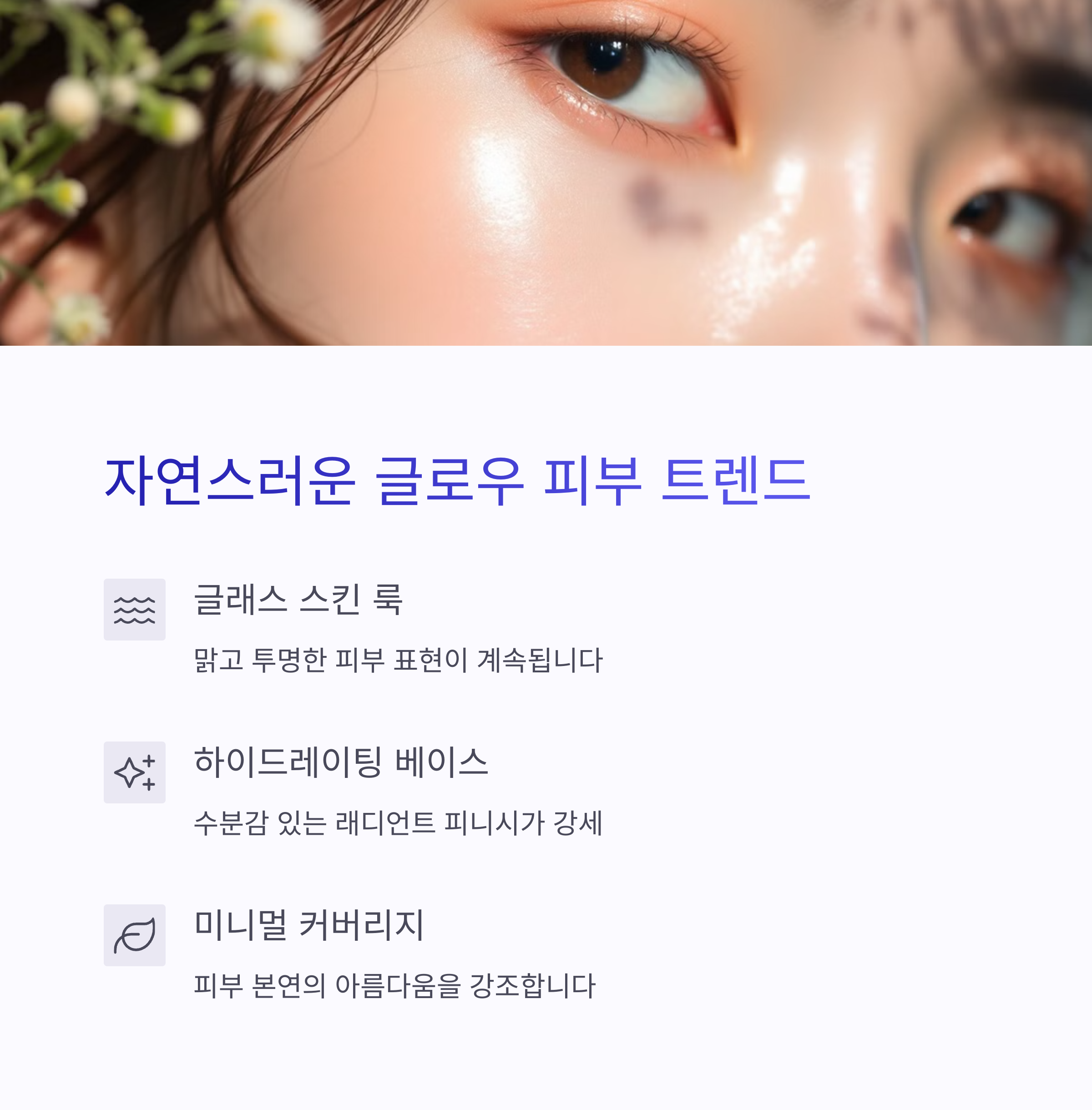 | 글로우 스킨 | 촉촉하고 윤기 나는 피부 표현이 핵심 포인트 |